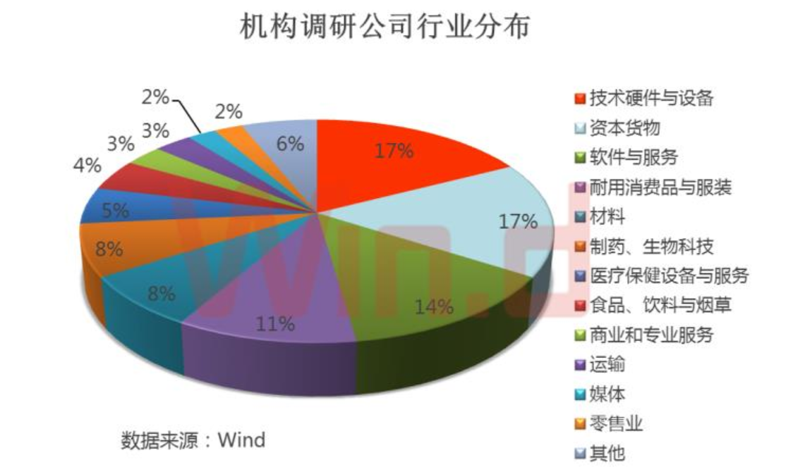 Wind統(tǒng)計顯示,10月22日以來,市場活躍度明顯提升,機構(gòu)也加大了對上市公司的拜訪頻率,有240多家公司接受了機構(gòu)調(diào)研,其中,有135家公司調(diào)研機構(gòu)數(shù)超過5家,從相關(guān)公司行業(yè)分布來看,技術(shù)硬件與設(shè)備最多有23家,占比17%,其次是資本貨物有22家,占比17%、軟件與服務(wù)、耐用消費品與服裝、材料行業(yè)公司數(shù)亦較多。隨著行情的轉(zhuǎn)暖,機構(gòu)對科技行業(yè)的關(guān)注度逐漸提升。
