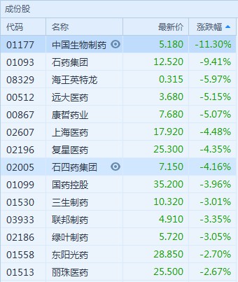 此外,4+7帶量采購預(yù)中選結(jié)果出爐,最大降價(jià)幅度超90%。醫(yī)藥股受帶量采購消息刺激,昨日遭重創(chuàng),早盤醫(yī)藥依然出現(xiàn)不同程度下跌。(王岳川)