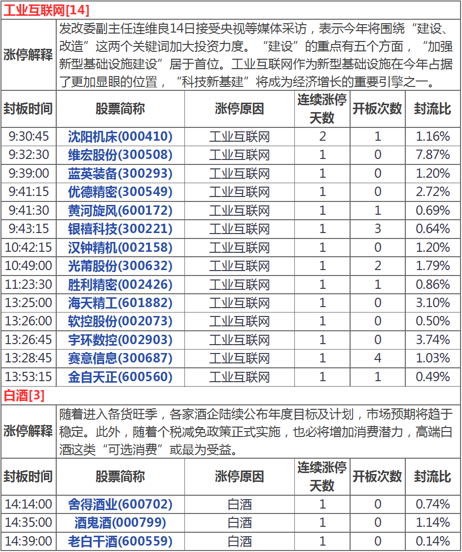 今天漲停家數(shù)較上一交易日有所增加,兩市51家漲停;跌停8家。成交量方面,滬市成交1374億元,深市成交1822億元,兩市總成交額約為3196元,較上一交易日放量365億元。盤(pán)面上,白酒、工業(yè)互聯(lián)網(wǎng)、券商導(dǎo)等板塊漲幅居前,煤炭、超導(dǎo)等板塊跌幅居前。