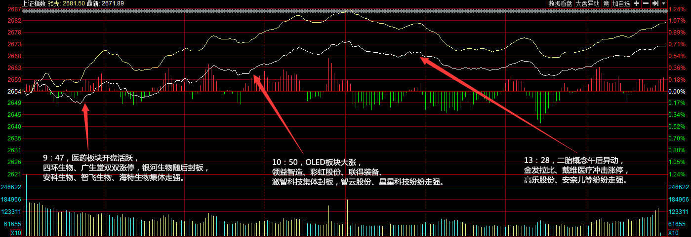 云財經(jīng)訊,兩市今日平開,隨后在醫(yī)藥、次新股的帶領(lǐng)下,創(chuàng)業(yè)板快速走強,而主板表現(xiàn)較為弱勢。午后兩市稍有回落,工業(yè)大麻、柔性屏等板塊輪番拉升,市場總體賺錢效應(yīng)不錯。個股漲多跌少,今日漲停75家,跌停1家。板塊普漲,OLED、醫(yī)藥、天津自貿(mào)區(qū)、氟化工等板塊漲幅居前。截止收盤,滬指報2671點,漲0.68%;深成指報8010點,漲1.15%;創(chuàng)業(yè)板指報1332點,漲1.23%。兩市成交較前一交易日放量。