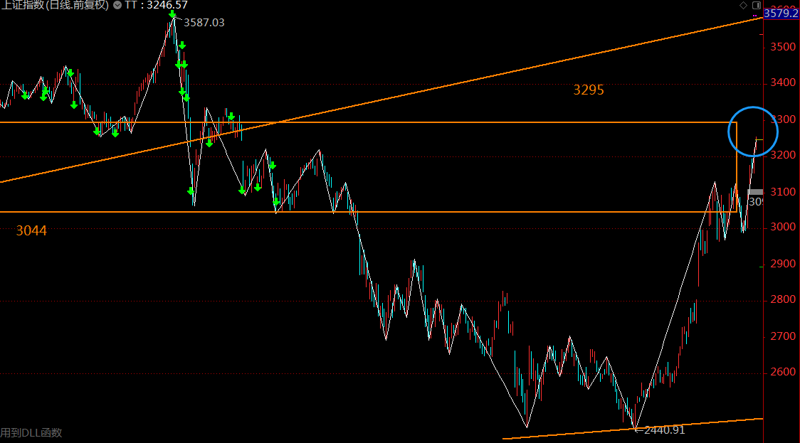 日線看,上證指數(shù)這里接近大級別中樞的上軌3295點,這里短線大概率會震蕩回落,一蹴而就的可能性不大。
