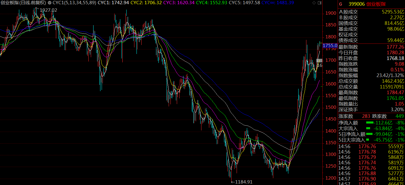 創(chuàng)業(yè)板走勢稍稍弱于主板,本周關(guān)注創(chuàng)業(yè)板能否新高,以及1719點的支撐力度。