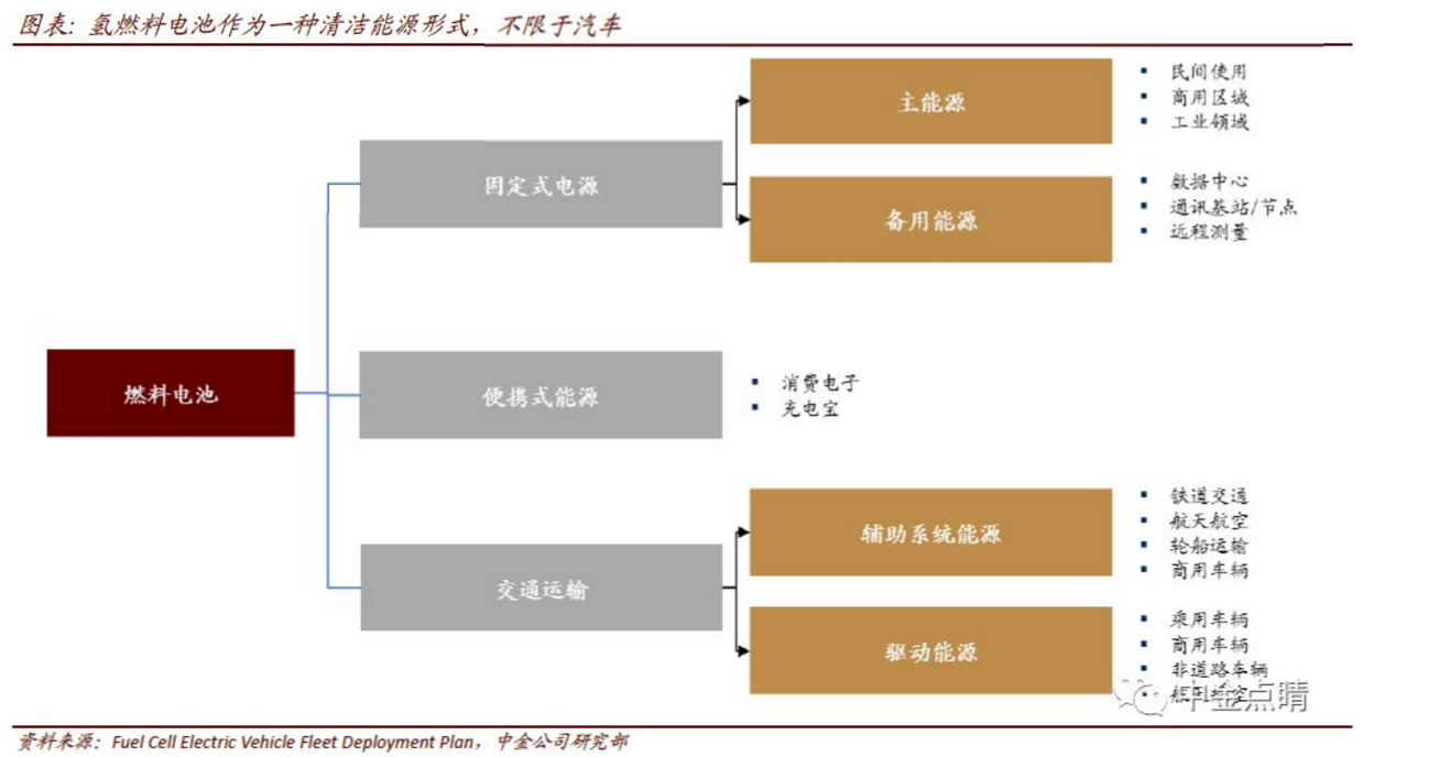 燃料電池產(chǎn)業(yè)鏈尚處在商業(yè)化早期,中性看待燃料電池板塊。但從資金門檻和技術門檻角度,未來有較高的市場份額和利潤空間的企業(yè)存在機會,細分板塊推薦順序是燃料電池商用車、加氫站、質子交換膜、燃料電池電堆及系統(tǒng)。全產(chǎn)業(yè)鏈可以分為上游的氫能制備、貯存、運輸、加注等環(huán)節(jié);中游的燃料電池電堆及系統(tǒng)、相關零部件等;下游的整車應用、工程服務與營運等。產(chǎn)業(yè)鏈中上游制氫、儲氫、加氫站建設快于中下游,在目前主流的制氫路線中(煤焦化&;氣化制氫、油氣制氫、氯堿制氫和清潔能源棄電制氫)。