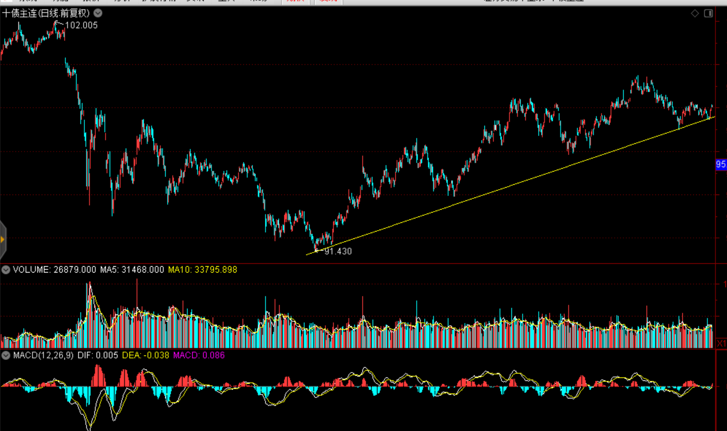 10年期國債期貨延續(xù)反彈態(tài)勢(shì):(與A股存在較為明顯的蹺蹺板效應(yīng))