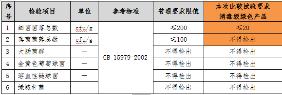 1.微生物指標(biāo)為目前國(guó)際上檢驗(yàn)衛(wèi)生巾商品衛(wèi)生質(zhì)量最為嚴(yán)格的綠色產(chǎn)品評(píng)價(jià)標(biāo)準(zhǔn)“消毒級(jí)”要求。“消毒級(jí)”要求細(xì)菌菌落總數(shù)低于國(guó)家標(biāo)準(zhǔn)要求10倍。