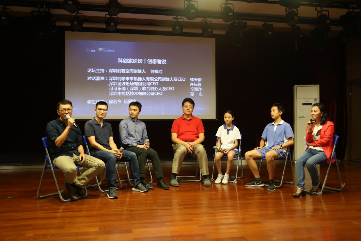 活動(dòng)以“人工智能——科幻未來”為主題,邀請到了人工智能領(lǐng)域的科學(xué)家,優(yōu)秀創(chuàng)業(yè)者等多位嘉賓通過主題分享、論壇對話以及產(chǎn)品展示體驗(yàn)等形式,給師生們帶來了一場人工智能的知識分享盛宴。香港中文大學(xué)深圳研究院眾創(chuàng)中心的人工智能創(chuàng)新團(tuán)隊(duì)亮相本次活動(dòng),分別是致力于機(jī)器人操作系統(tǒng) (ROS)的產(chǎn)品化技術(shù)研發(fā)和生態(tài)建設(shè),為高校及企業(yè)提供 ROS課程及技術(shù)解決方案的“深圳創(chuàng)想未來機(jī)器人有限公司”;專注于 STEAM教育的教育科技,致力于透過靈感和科技的有機(jī)結(jié)合,將最新的理念和技術(shù)帶入 STEAM教育領(lǐng)域的“可可樂博(深圳)科技有限公司”;致力于AI語音領(lǐng)域技術(shù)研發(fā),利用優(yōu)于行業(yè)、準(zhǔn)確率大于99.5%的聲紋識別算法,將人工智能、生物辨識與復(fù)雜行業(yè)場景進(jìn)行深度融合的“深圳市聲揚(yáng)科技有限公司”。分別在活動(dòng)中做了精彩的主題演講、學(xué)生互動(dòng)及產(chǎn)品展示。