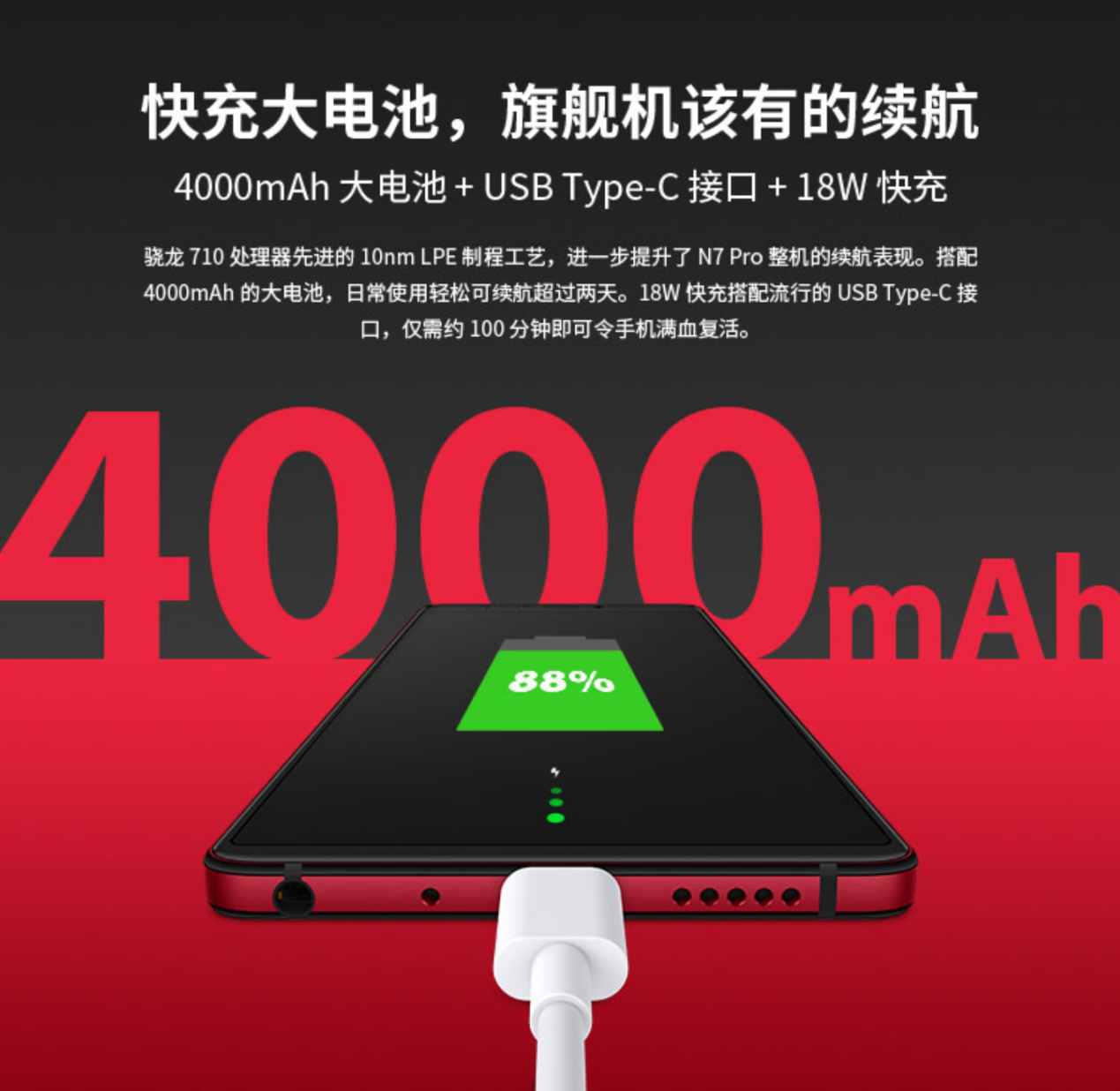 360手機N7 Pro采用了雙面玻璃機身設(shè)計,無劉海5.99英寸全面屏,分辨率2160×1080像素,有珊瑚紅和瑪瑙黑兩色可選。作為2018年度的旗艦機型,配置上,N7 Pro搭載當前高通家族中最受關(guān)注的驍龍710處理器,4000mAh大容量電池,支持18W快充,官方宣稱20分鐘可充電30%,100分鐘可充滿。此外在拍照方面,360手機N7 Pro采用了堪稱耀眼的四攝設(shè)計。