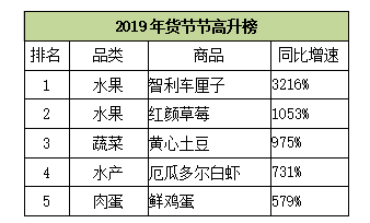 6.智利車?yán)遄?、鮮肉、活海鮮成2019年年貨新星。