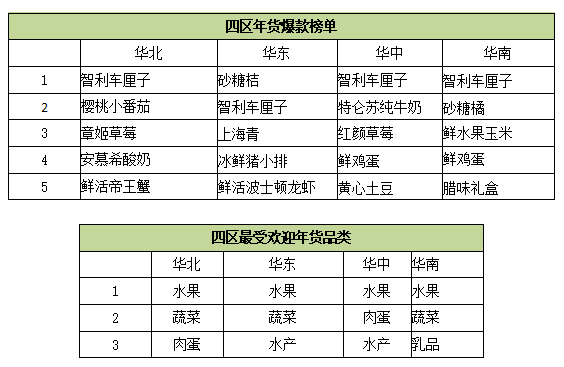 12.進(jìn)口生鮮已成為消費(fèi)者年貨必囤商品。其中,智利、厄瓜多爾、阿根廷、泰國(guó)、越南成進(jìn)口年貨最受歡迎產(chǎn)地。智利:智利車?yán)遄?進(jìn)口藍(lán)莓。厄瓜多爾:厄瓜多爾進(jìn)口香蕉/厄瓜多爾白蝦。阿根廷:阿根廷紅蝦。泰國(guó):泰國(guó)龍眼/泰國(guó)椰青。越南:越南紅肉火龍果/越南白火龍果
