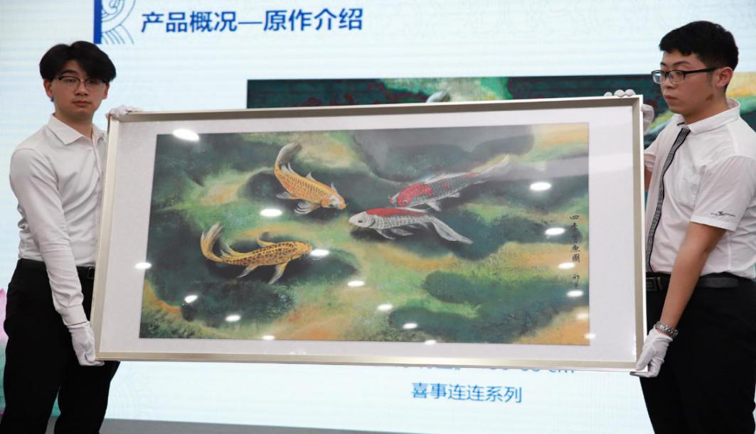 活動現(xiàn)場還展示了這三幅版畫產(chǎn)品的樣品——《喜事連連》、《四季有魚》、《觀音寶像》,該產(chǎn)品具有三大亮點(diǎn):(一)藝術(shù)價值高;(二)投資潛力大;(三)稀缺性強(qiáng)。