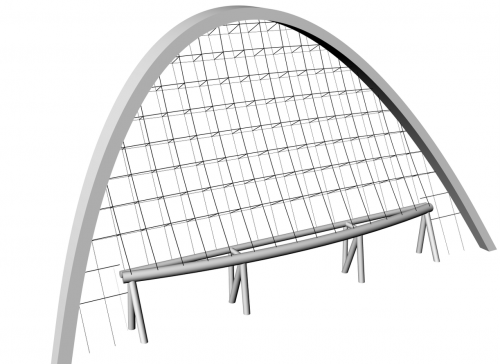 該標(biāo)段施工負(fù)責(zé)人透露,這種傾斜幕墻與90度垂直地面的幕墻相比,安裝難度呈指數(shù)型增長(zhǎng),由于難度系數(shù)過高,目前國(guó)內(nèi)還未出現(xiàn)過相同案例。為成功安裝這面傾斜幕墻并保證其的穩(wěn)固性,專家們經(jīng)過重重研究與實(shí)驗(yàn),最終決定采用雙層索網(wǎng)系統(tǒng):內(nèi)外兩層分別采用兩種直徑的不銹鋼拉索,嚴(yán)格按照精密計(jì)算的參數(shù)橫豎向拉緊,分別呈外凸?fàn)詈蛢?nèi)凹狀,最后用螺桿連接以錨固整面拉索玻璃幕墻。