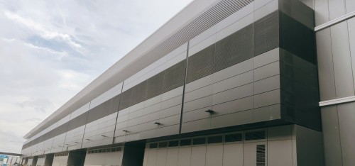 不僅如此,項(xiàng)目組在材料種類的選擇上也非??季浚耗粔θ渴褂霉I(yè)級(jí)鋁板,硬度比普通幕墻鋁板高15%,除了具備超強(qiáng)的抗變形、抗劃傷、防裂耐蝕能力之外,還能夠在潮濕環(huán)境中保持穩(wěn)定的性能。施工方負(fù)責(zé)人表示,深圳國(guó)際會(huì)展中心幕墻鋁板的平整度是普通鋁板的3-4倍,防變形能力則至少是普通材料的2倍。