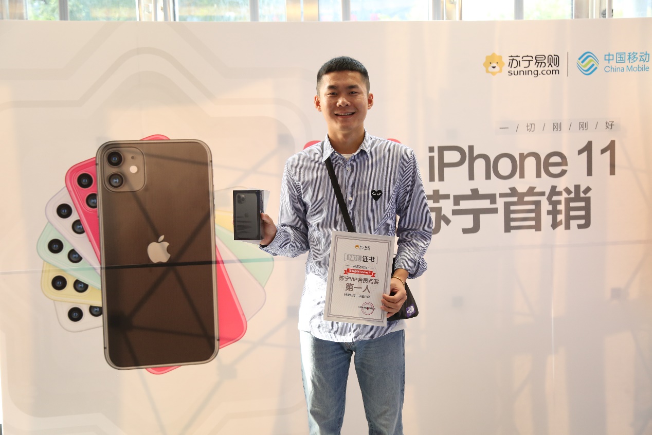 深圳新聞網(wǎng)2019年9月20日訊 9月20日8點, iPhone11系列新品在國內(nèi)線上線下渠道同步開售,上午8點剛剛開售一分鐘內(nèi),在北京慈云寺蘇寧易購門店,國內(nèi)第一臺 iPhone11手機已經(jīng)賣出,一位在北京剛畢業(yè)的大學(xué)生謝先生作為資深果粉,成為國內(nèi)入手 iPhone11新機的第一人。