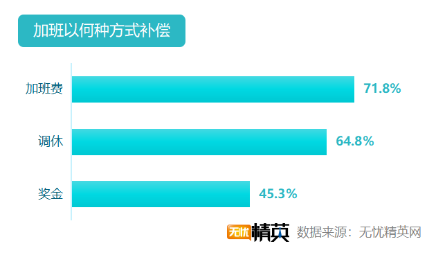 幾乎所有雙11加班的職場精英都能獲加班補(bǔ)償,更有31.4%人能獲得兩項(xiàng)或更多的補(bǔ)償。71.8%的職場精英可以獲得加班費(fèi);64.8%的人獲得調(diào)休;45.3%的人會獲得額外的獎(jiǎng)金。