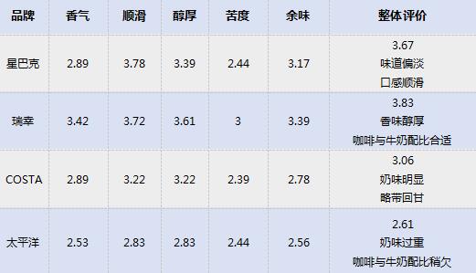而20位咖啡達(dá)人對(duì)4款美式咖啡的整體風(fēng)味評(píng)價(jià)也不盡相同:瑞幸有適度的酸度,具有水果及焦糖風(fēng)味,接受程度最高;星巴克煙感重,咖啡本身甜感低;COSTA煙感及陳味明顯,酸酐較強(qiáng),咖啡甜感低;太平洋入口微苦甜感低,酸苦較平衡。