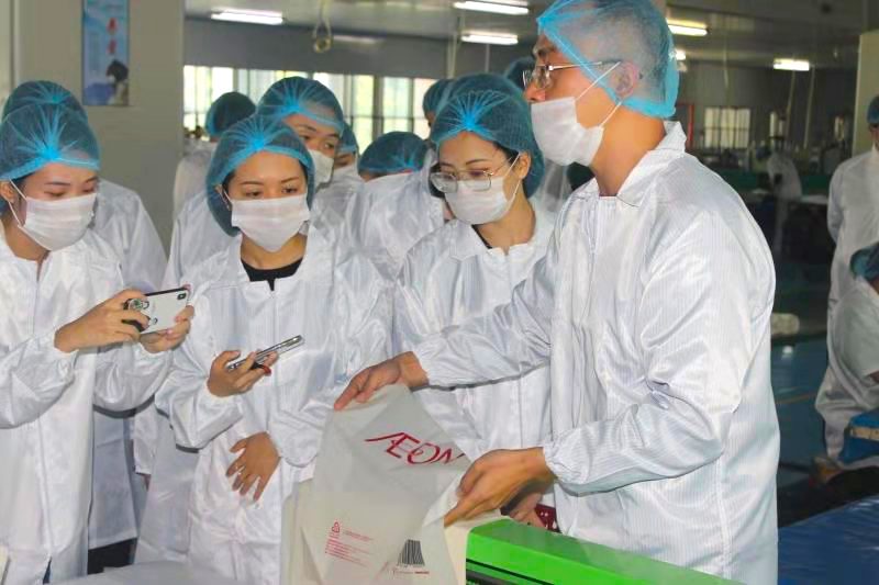 媒體參觀全生物降解購(gòu)物袋制作情況