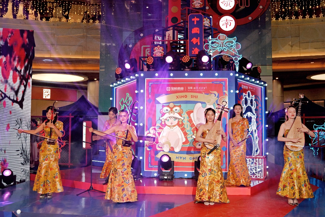 慶典當(dāng)天,豐富多彩的異業(yè)活動貫穿全場,紅包雨搖一搖的現(xiàn)場互動小游戲?yàn)閼c典帶來了一波又一波歡呼;街舞串燒、國潮T臺大秀、樂隊演奏、漢服快閃秀、近景魔術(shù)等精彩表演更是將現(xiàn)場氣氛不斷推向高潮。作為今年周年慶的主打形象,“國潮 IP”——南獅霸氣亮相,呆萌與喜慶的形象一出場便引爆現(xiàn)場,成為全場焦點(diǎn)。富有中國傳統(tǒng)文化內(nèi)涵的南獅與西方潮流電音的巧妙結(jié)合,碰撞出新穎而奇妙的火花,也讓在場觀眾體驗(yàn)到了一場耳目一新的視聽盛宴。