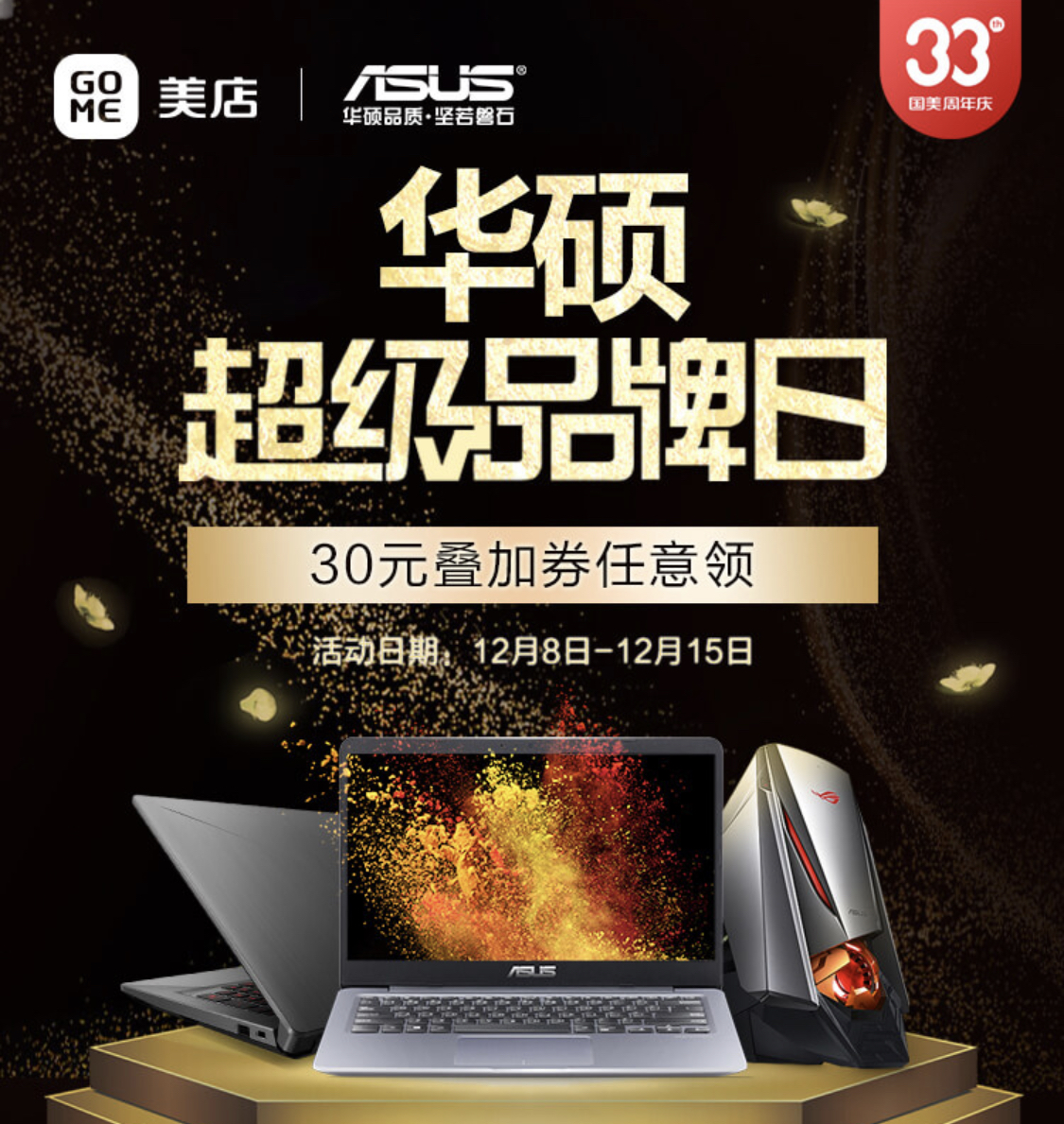 國美33周年華碩超級(jí)品牌日,游戲、辦公、輕薄顏值筆記本電腦應(yīng)有盡有,全場產(chǎn)品可領(lǐng)30元無門檻可疊加優(yōu)惠券,相當(dāng)于在原有優(yōu)惠基礎(chǔ)上再降30元。