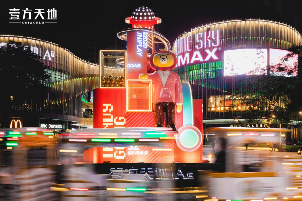 壹方天地極具特色的美陳也營造出夜間獨一份的精彩??蓯鄣腎P美陳陳列于開闊的街區(qū)之上,配合燈光的變幻,為街區(qū)注入更多靈動,也成為人們必打卡之地。尤其是近日上線的圣誕新年美陳,用獨特的國潮風(fēng)范抒發(fā)壹方的潮流態(tài)度,為摩登都市更添風(fēng)情。