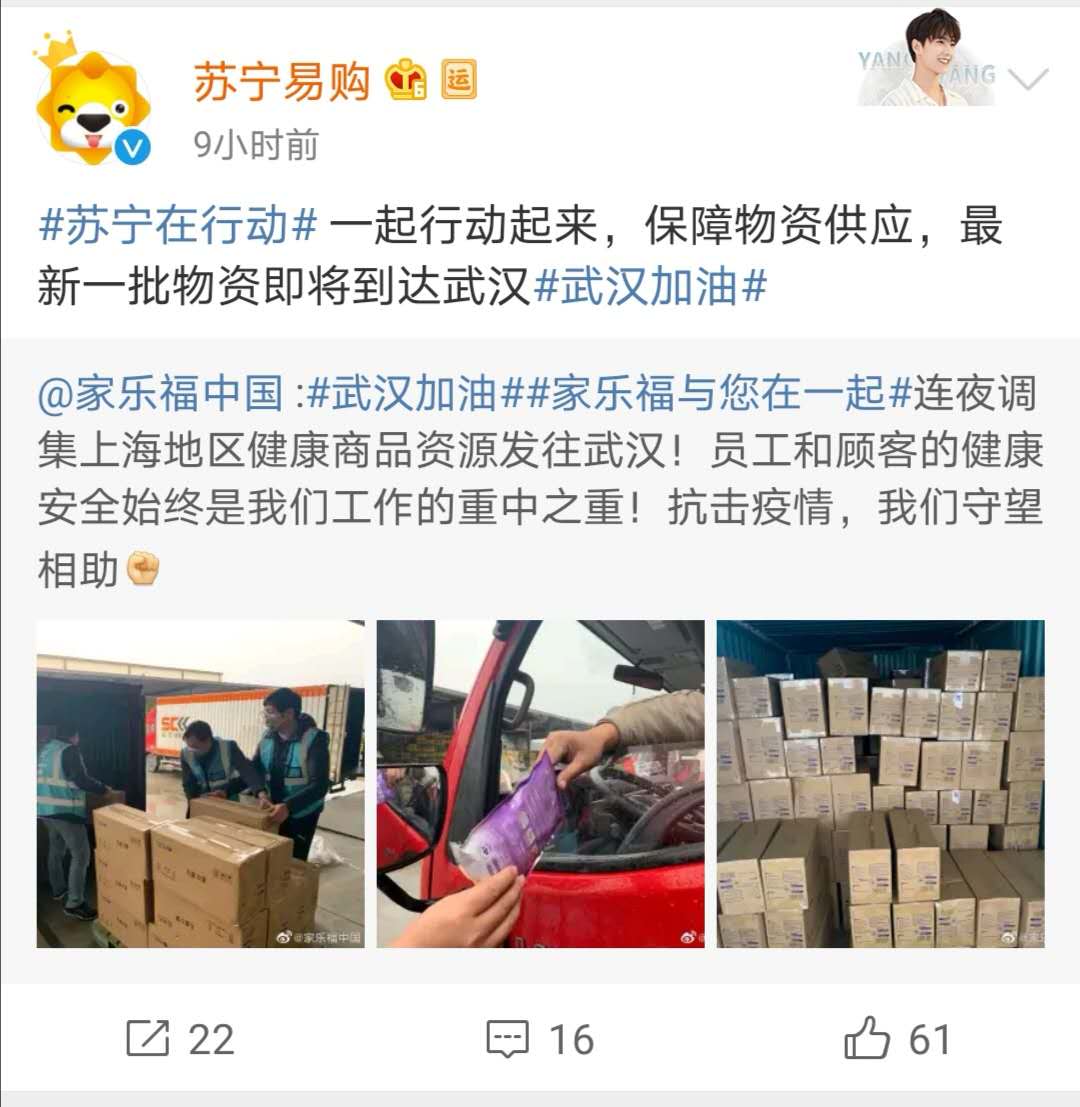 保障物資供應(yīng),蘇寧最新一批物資即將到達(dá)武漢