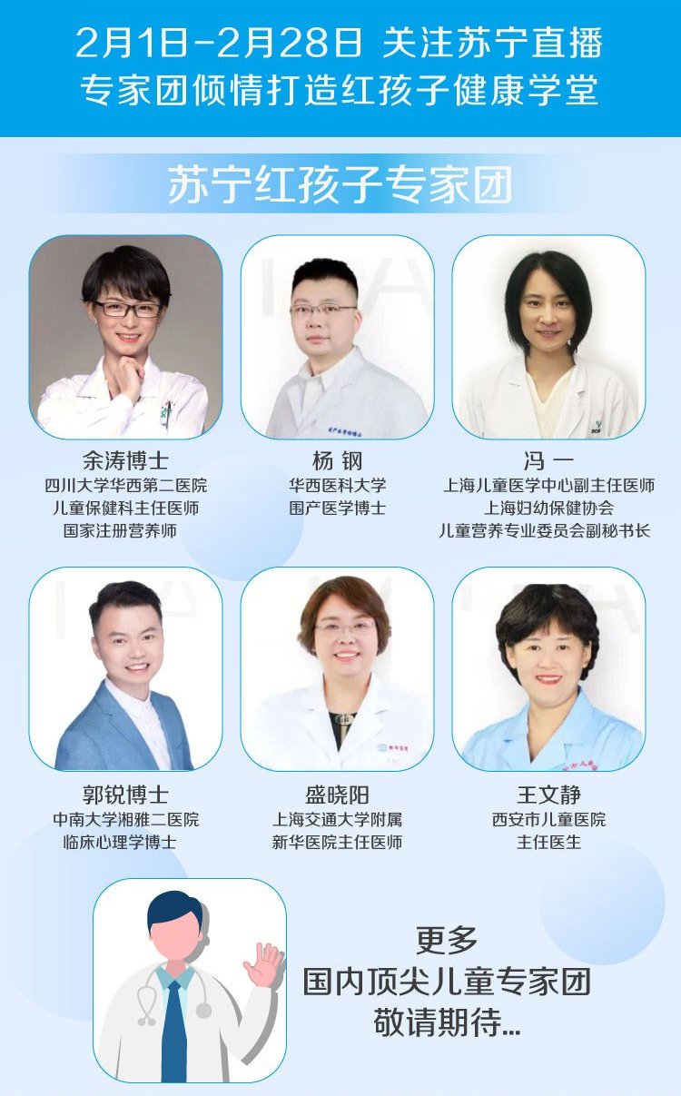 蘇寧紅孩子聯(lián)合惠氏、雀巢、佳貝艾特、美贊臣、伊利,邀請到北京協(xié)和醫(yī)院、、上海交通大學(xué)附屬新華醫(yī)院、廣州市婦女兒童醫(yī)療中心、中南大學(xué)湘雅二醫(yī)院、華西醫(yī)科大學(xué)、華西第二醫(yī)院、首都醫(yī)科大學(xué)附屬北京婦產(chǎn)醫(yī)院、上海交通大學(xué)醫(yī)學(xué)院附屬國際和平婦幼保健院等醫(yī)院的主任醫(yī)師以及醫(yī)科大學(xué)的醫(yī)學(xué)博士組成專家團(tuán),通過蘇寧直播為孕產(chǎn)婦直播講解孕媽乳媽、兒童防護(hù)措施,以及如何避免寶寶交叉感染的防護(hù)措施和建議。