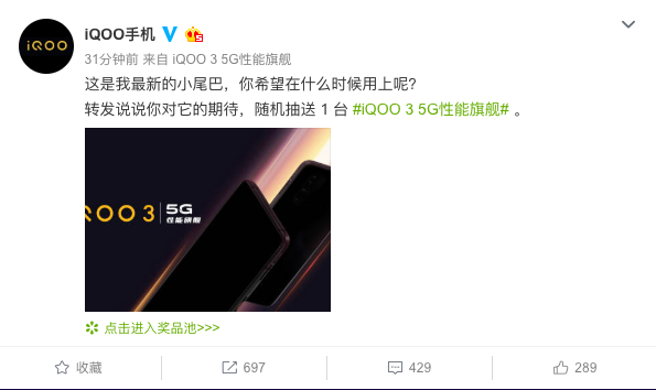 雖然iQOO3的具體配置尚不清楚,但“5G性能旗艦”卻給了我們很大的聯(lián)想空間。聯(lián)想到2019年底高通8系最新旗艦級(jí)處理器驍龍865正式發(fā)布時(shí), iQOO官方微博第一時(shí)間與“Qualcomm中國”進(jìn)行互動(dòng),瘋狂暗示 iQOO將有望首批搭載高通驍龍865處理器。而“5G性能旗艦”定義的再次放出,正好符合高通驍龍865的性能特征,讓酷客們對(duì)iQOO3的性能充滿期待。
