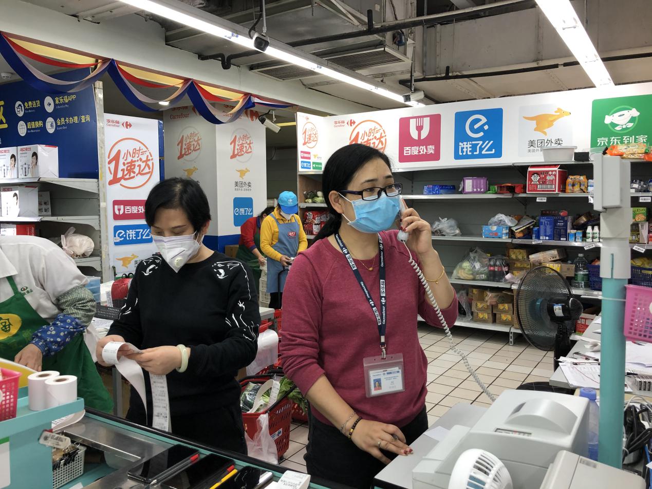 “最近十幾天,我們每天都要工作12個小時以上。”說這話的正是家樂福深圳梅林店的電商主管王立華,由她帶領的5人小團隊肩負起該店“配送到家”服務的揀貨、核單、打包、確認、與騎手交貨等工作。疫情當前為避開人群,更多的市民選擇在線上外賣平臺訂購超市的商品配送到家,因此超市的線上訂單猛增。為了實現“1小時速達”的承諾,避免訂單超時,王立華要求團隊從出單到打包好不能超過20分鐘,每天過手的各類商品有上千件。“家樂福梅林店的賣場面積大概是5000平方米,每天上下樓跑多少趟具體倒是沒有統(tǒng)計過,但像現在特殊時期,我們一天在網上接到的‘配送到家’服務訂單基本都要超過800單,有時候會到1000單?!蓖趿⑷A回答記者時,額頭上一直有細密的汗珠,聲音也有點沙啞了。