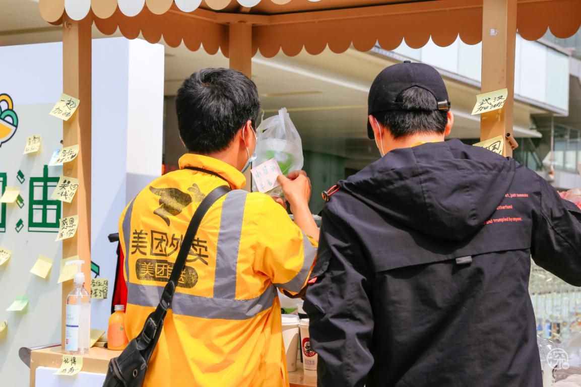 中午送餐高峰期結(jié)束后,周邊上班的愛心市民得知這個(gè)活動(dòng)后,也不斷來悄悄“補(bǔ)貨”。有的在便利店打包了烏冬面放在愛心餐車上;有的遠(yuǎn)程購買了薯?xiàng)l、水果茶并留下了貼心備注;還有的市民陸續(xù)帶著“奇奇怪怪”的物品放在無人值守愛心站,在這里感受到了深圳這座城市的溫暖。