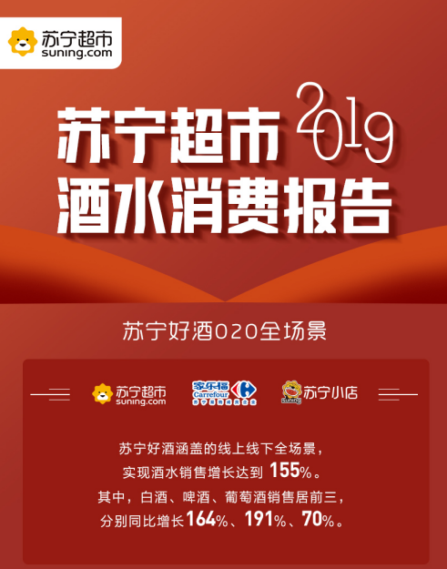 深圳新聞網(wǎng)2020年3月20日訊 昨日,蘇寧超市發(fā)布2019年度酒水消費報告。數(shù)據(jù)顯示,2019年,蘇寧好酒全渠道銷售同比增長155%。其中,白酒、啤酒、葡萄酒銷售分別同比增長164%、191%、70%??v觀整年,家樂福、飛天茅臺酒、全場景等成2019年蘇寧酒水關(guān)鍵詞,這也進(jìn)一步凸顯了蘇寧超市酒水生態(tài)圈建設(shè)的卓越成效。