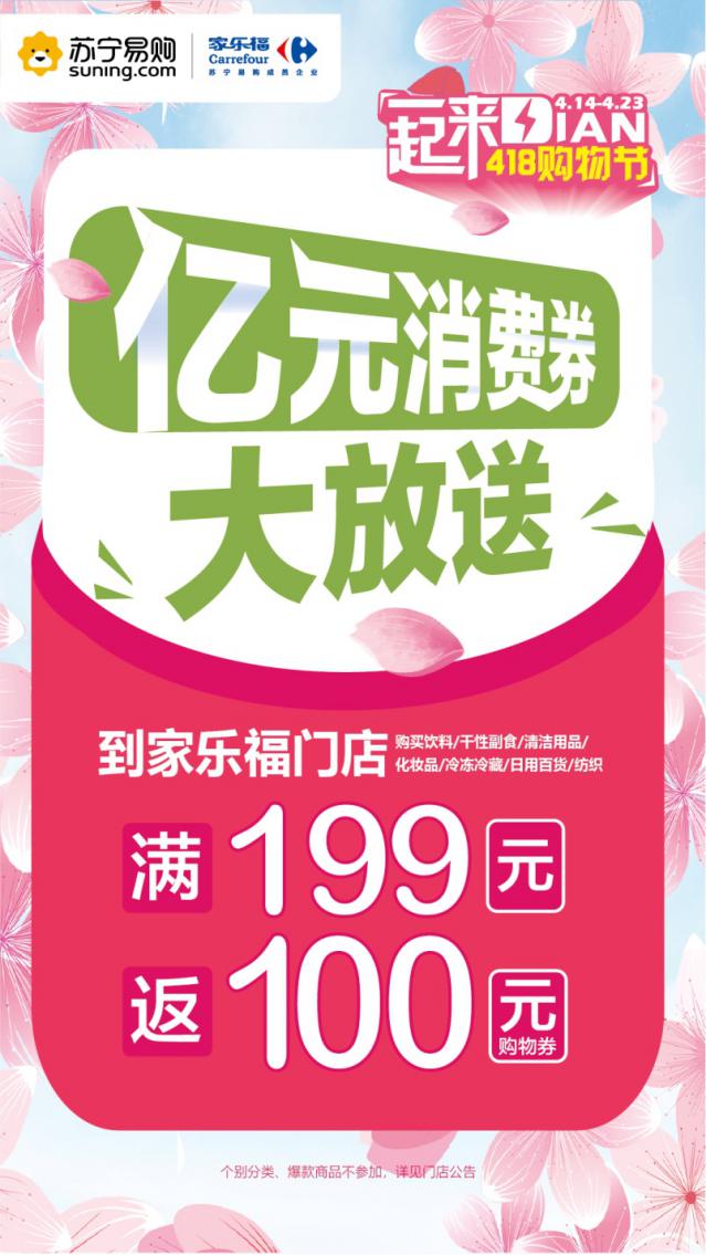 4月9日,家樂福宣布面向全國(guó)消費(fèi)者發(fā)放總額過(guò)億的家樂福消費(fèi)券,旨在提振市民消費(fèi)信心,促進(jìn)消費(fèi)回暖?!?18一起來(lái)Dian”購(gòu)物節(jié)期間,凡在家樂福全國(guó)209家線下門店購(gòu)物滿199元,即可獲贈(zèng)總值100元的消費(fèi)券(5張20元消費(fèi)券),覆蓋眾多暢銷品類以及剛需民生商品(消費(fèi)券可在指定期間使用)。