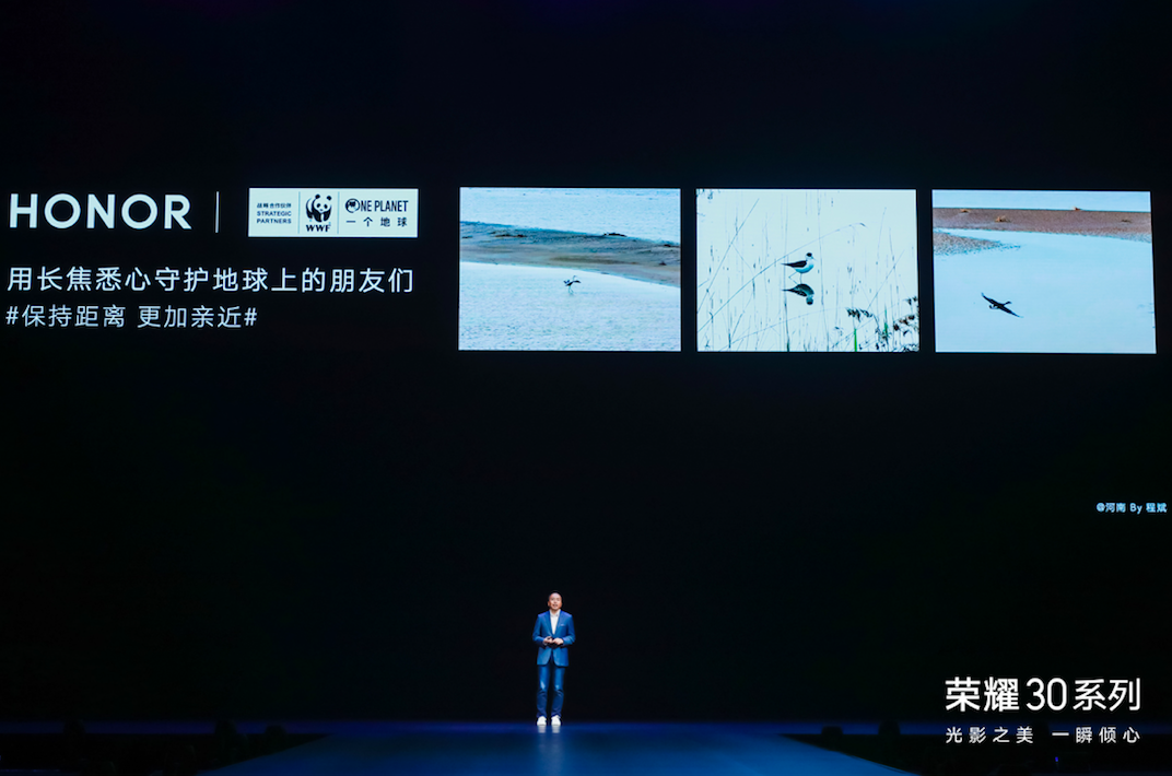 見圳客戶端 ·深圳新聞網(wǎng)2020年4月15日訊 今天,在榮耀30系列新品發(fā)布會暨2020榮耀春夏秀現(xiàn)場,榮耀宣布與世界自然基金會(WWF),一個地球自然基金會(OPF)建立戰(zhàn)略伙伴關(guān)系,秉持“保持距離更加親近”的理念,共同倡議與自然和諧共生、守護野生動植物的自然棲息,用影像表達喜愛,用長焦紀錄地球生物多樣性。