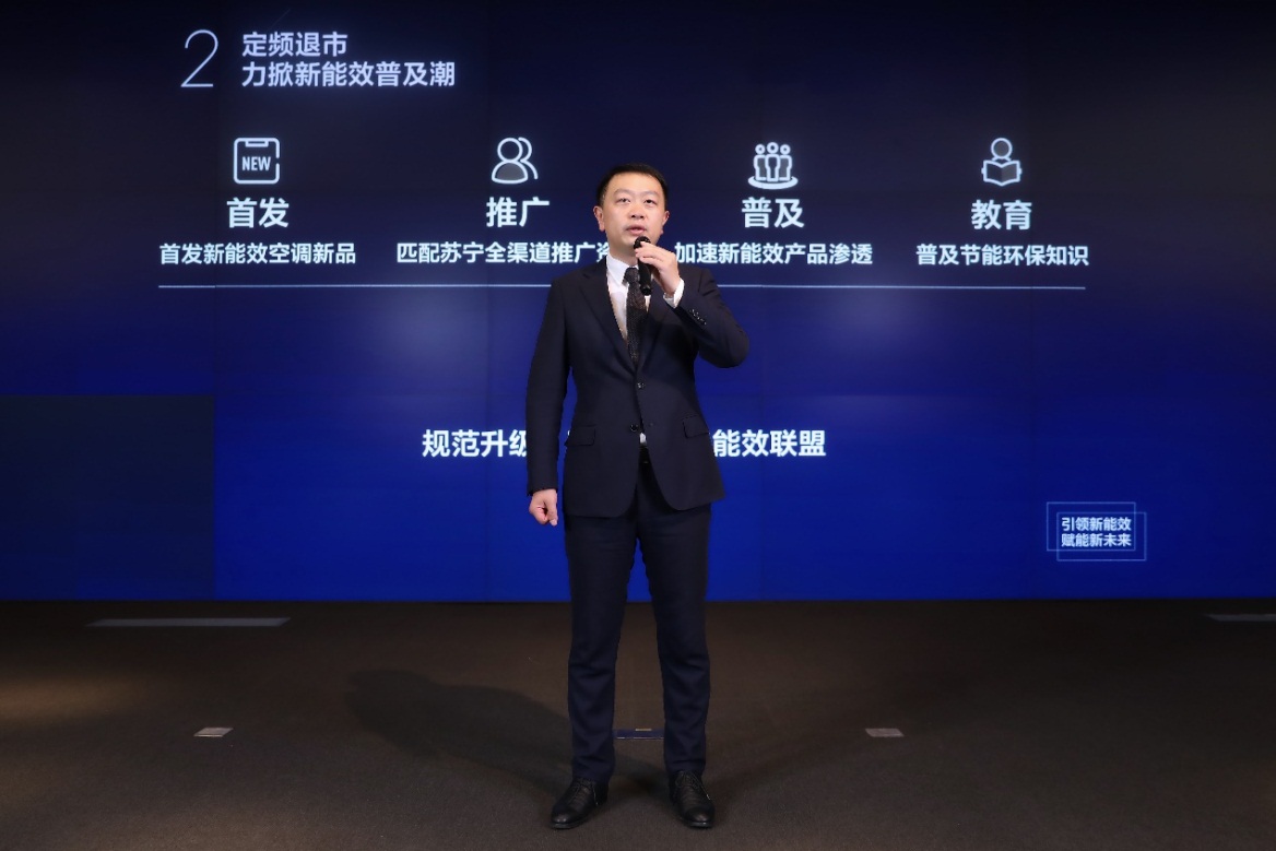 國家標(biāo)準(zhǔn)推動新能效空調(diào)進(jìn)入普及快車道的同時(shí),蘇寧作為家電第一渠道,也在積極通過綠色消費(fèi)讓利活動,加大新能效空調(diào)產(chǎn)品的推廣。蘇寧家電集團(tuán)副總裁徐仲介紹說,去年8月,蘇寧就啟動了“定頻退市”項(xiàng)目。今年將在此基礎(chǔ)上多重加碼,一方面聯(lián)合各家空調(diào)企業(yè),成立“新一級能效聯(lián)盟”,加速新能效空調(diào)的研發(fā)與推廣;另一方面持續(xù)開展“空調(diào)節(jié)能風(fēng)暴活動”,涵蓋包括老能效清倉、新能效補(bǔ)貼、以舊換新和24期免息在內(nèi)的四重補(bǔ)貼,從而加速新舊能效產(chǎn)品的切換,降低新能效空調(diào)的消費(fèi)門檻。