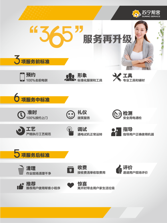 “三分產(chǎn)品七分安裝”,超60萬套空調(diào),如何保障快速及時的安裝?蘇寧幫客負責(zé)人告訴記者,蘇寧全國區(qū)域空調(diào)售后服務(wù)堅持貨到24小時上門安裝的服務(wù)時效,并按照用戶預(yù)約時間準時上門。不僅如此,全國蘇寧幫客空調(diào)安裝服務(wù)統(tǒng)一堅持365服務(wù)標準,覆蓋作業(yè)前、中、后期的工服、工牌、鞋套、墊機布、收費標準、衛(wèi)生維護等多項標準,并歡迎用戶監(jiān)督。