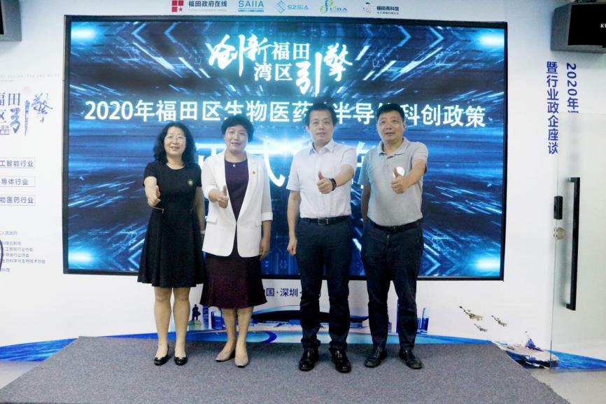 時(shí)春蕾書記、張忠暉局長、周斌會(huì)長、王艷梅所長聯(lián)合啟動(dòng)“創(chuàng)新福田,灣區(qū)引擎”2020年福田區(qū)生物醫(yī)藥&半導(dǎo)體科創(chuàng)政策正式發(fā)布儀式。