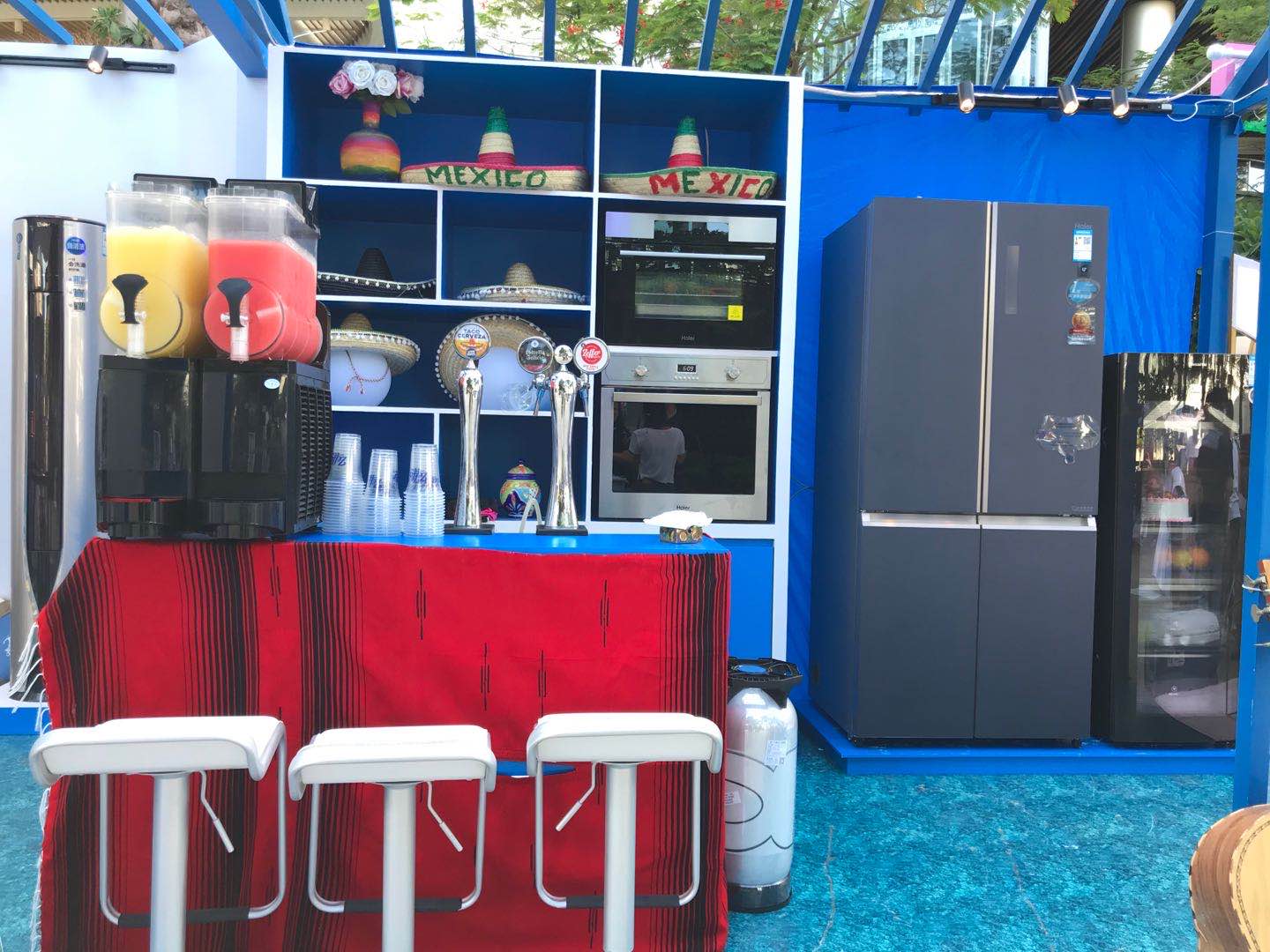 來(lái)到水吧,你可以看見(jiàn)冰箱、冰吧裝滿(mǎn)琳瑯滿(mǎn)目的酒水,來(lái)到現(xiàn)場(chǎng)的人們可以盲選3類(lèi)基礎(chǔ)酒,自己或請(qǐng)調(diào)酒師為你調(diào)配一杯今天的lucky drink。冰箱里填充了滿(mǎn)滿(mǎn)的食材、水果,想吃各類(lèi)冰沙都可以現(xiàn)場(chǎng)制作體驗(yàn)。來(lái)到廚電區(qū)域可以品嘗由海爾烤箱現(xiàn)場(chǎng)制作的小餅干,焦香酥脆讓你流連忘返。