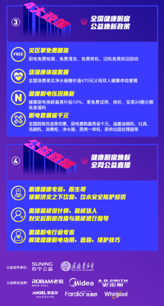 與此同時(shí),洪水致使大批廚房電器受損,疊加高溫天氣,災(zāi)民飲食安全面臨考驗(yàn)。蘇寧易購特別捐贈50套健康廚電,涵蓋油煙機(jī)、灶具、消毒柜等必備廚房電器,讓災(zāi)民更快恢復(fù)健康生活。同時(shí),廚房作為“病從口入”最關(guān)鍵的環(huán)節(jié),洗菜、水質(zhì)凈化、烹飪除油煙、餐具清潔消毒、廚余垃圾處理等每一環(huán)都不容忽視,蘇寧易購特別倡導(dǎo)“健康廚房7步驟”,全流程打造健康廚房,并借助蘇寧易購雙線渠道全面開展科普活動。