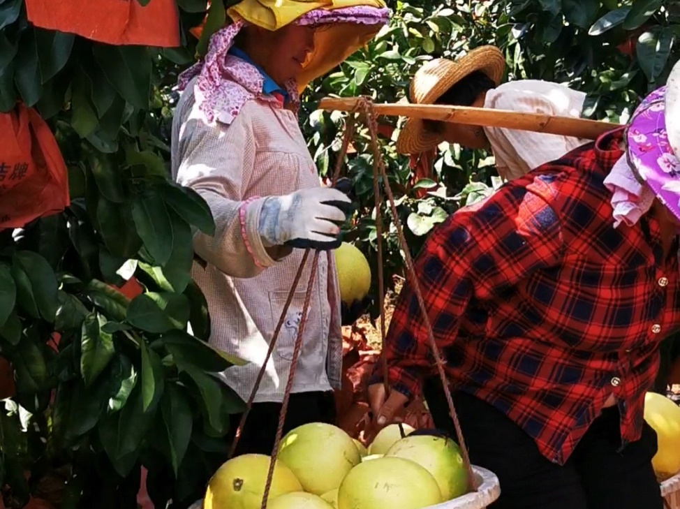 梅州果農(nóng)忙于采摘新產(chǎn)季蜜柚,通過京喜產(chǎn)地直發(fā)到消費(fèi)者家里