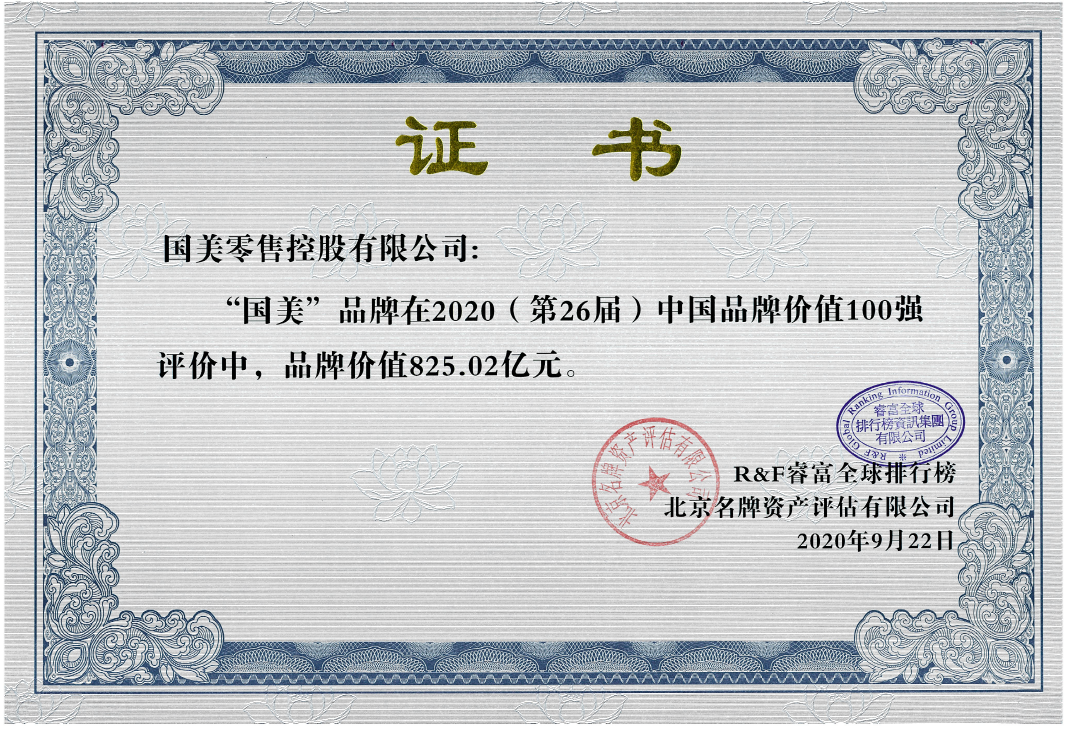 見圳客戶端·深圳新聞網(wǎng)2020年9月24日訊 日前,睿富全球排行榜資訊集團與北京名牌資產(chǎn)評估有限公司發(fā)布了2020(第26屆)“中國品牌價值100強”研究報告,國美入選“中國品牌價值100強”榜單,這也是國美連續(xù)14年位居該榜電器零售行業(yè)第一名。