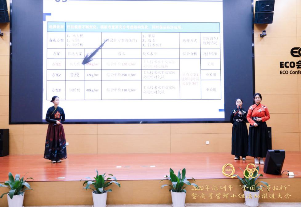現(xiàn)場,獲得深圳市第十屆職工技術(shù)創(chuàng)新運動會暨2020年深圳技能大賽——質(zhì)量管理小組活動技能競賽金獎的小組深圳市中興通訊股份有限公司低空飛行QC小組、中國華西企業(yè)有限公司冠澤金融中心QC小組為大家作了精彩發(fā)表展示。由市總工會基層組織建設和經(jīng)濟工作部二級調(diào)研員張麗英宣讀“深圳市第十屆職工技術(shù)創(chuàng)新運動會暨2020年深圳技能大賽——質(zhì)量管理小組活動技能競賽”結(jié)果的通報,并為16個金獎小組進行授牌,市政協(xié)常委、市質(zhì)量協(xié)會執(zhí)行會長李榕,市科協(xié)機關(guān)黨委副書記、紀委書記劉衛(wèi)東,市婦聯(lián)組聯(lián)發(fā)展部二級調(diào)研員嚴俊勇,工商聯(lián)會員部部長劉傳分別為32個銀獎和32個銅獎小組進行授牌。