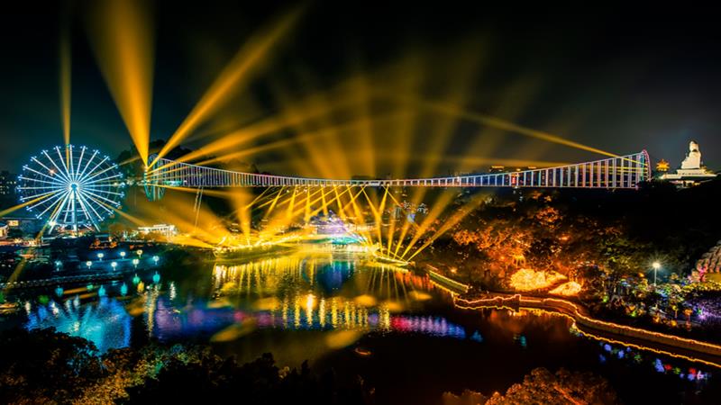 2021年是農(nóng)歷丑牛年,隱賢山莊特別推出了“與牛共舞”和小丑互動(dòng)節(jié)目,景區(qū)選取了傳統(tǒng)文化里具有勤勞實(shí)干品質(zhì)的“?!睘殚_(kāi)年使者,讓大家與可愛(ài)的萌牛共舞,再配上幽默搞笑的小丑與游客互動(dòng),貼合“丑?!钡男履曛黝}。“魔幻孔雀谷”是以孔雀谷的多彩靜謐的環(huán)境為背景,由國(guó)內(nèi)知名魔術(shù)師現(xiàn)場(chǎng)表演近景魔術(shù),比熒幕觀賞更有逼真和神秘的效果?!帮L(fēng)情加勒比”將在加勒比民族舞臺(tái)上演云南佤族特色舞蹈,讓東莞游客不出遠(yuǎn)門就能體驗(yàn)到異域風(fēng)情?!拌仓埂笔窃陔[賢山莊的網(wǎng)紅橋——3D玻璃橋演繹瀑布燈光秀,空中七彩燈光閃耀,與隱賢湖水交相輝映,猶如置身唯美的天上街市。“鵲橋浪漫”是隱賢山莊專門為有情人預(yù)備的一份節(jié)日禮物,在喜鵲的簇?fù)砗鸵魳?lè)的伴奏下,他們從鵲橋的兩端緩緩走向?qū)Ψ?,將中華民族流傳千年的牛女相會(huì)的愛(ài)情故事由神話變成現(xiàn)實(shí)。