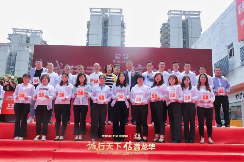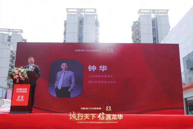 儀式上,誠商會創(chuàng)會會長、萬眾城集團董事長鐘華致歡迎辭,他說,萬眾城集團自2009年開始做誠信建設(shè),創(chuàng)立了“誠信基金”“誠信沙龍”“5A級誠信商戶評選”三板斧,將商戶有效投訴從十二年前的91起,商戶自覺誠信經(jīng)營,往后每年未超過5起。萬眾城既是誠信建設(shè)者,也是受益者,投訴率和理賠率逐年下降,商家營業(yè)額逐年上升。經(jīng)過嚴格的篩選和評審,萬眾城家居評出了2020年度5A商戶共346戶,并在當天的儀式上給20名5A商戶代表授牌。