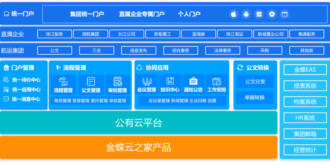 基于云之家,廣東航運(yùn)打造了全面覆蓋舊有OA的集團(tuán)統(tǒng)一門戶和數(shù)字化工作平臺(tái),完整還原從擬稿、審閱、簽發(fā)、套紅、蓋章、分發(fā)、辦理、發(fā)文轉(zhuǎn)收文的全流程公文管理。