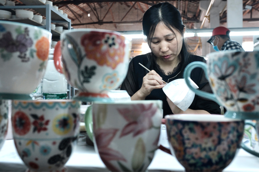 “電商平臺能夠滿足和培養(yǎng)消費者需求,讓陶瓷餐具逐漸成為高頻消費品。”蔡曉容指出。2018—2020年,這一系列的佳佰彩繪杯,在京東平臺的銷量連續(xù)三年復(fù)合增長率超過100%。去年,聯(lián)源在國內(nèi)市場的銷售額較2019年增長了50 %,達到歷年最佳,內(nèi)銷比重也由此前的25%提升到了50%。