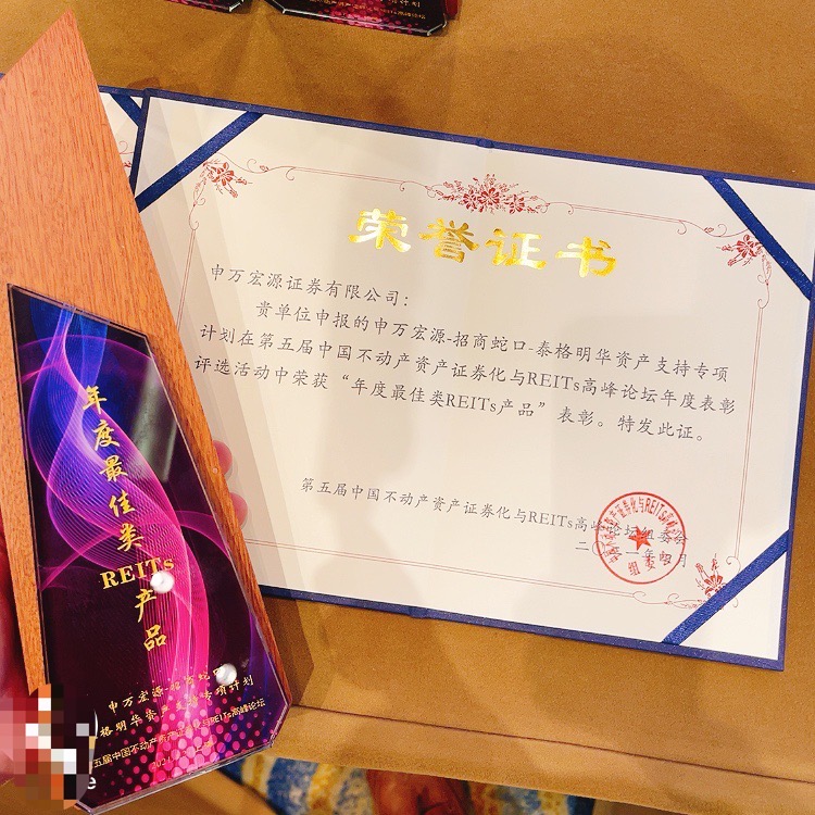 與招商蛇口申報(bào)基礎(chǔ)設(shè)施公募REITs同時(shí),由中國房地產(chǎn)業(yè)協(xié)會(huì)聯(lián)合中國REITs聯(lián)盟等主辦的“第五屆中國不動(dòng)產(chǎn)資產(chǎn)證券化與REITs高峰論壇”上,憑借申萬宏源-招商蛇口-泰格明華資產(chǎn)支持專項(xiàng)計(jì)劃,招商蛇口獲評(píng)為“最佳原始權(quán)益人”,泰格明華項(xiàng)目獲得“年度最佳類REITs產(chǎn)品”獎(jiǎng)項(xiàng)。