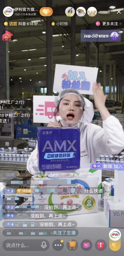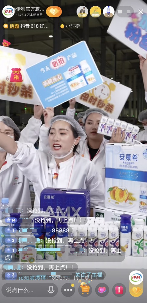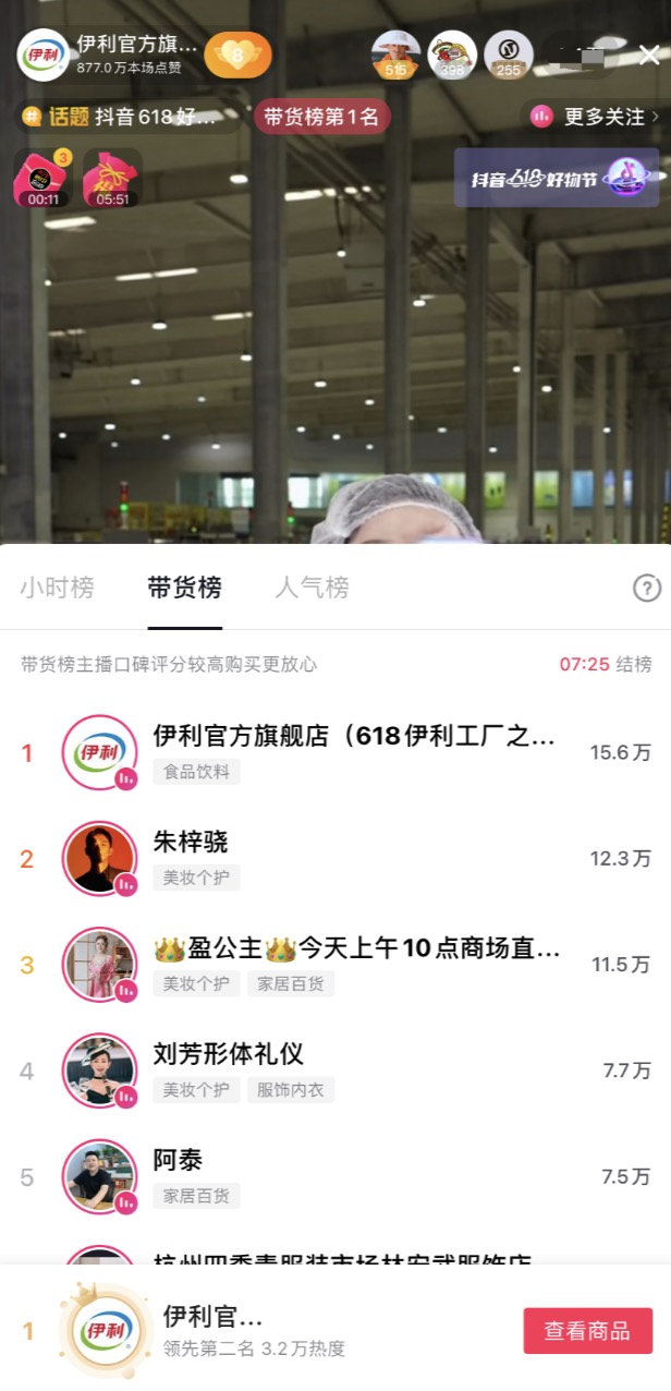 同時(shí),伊利洞察到消費(fèi)者對(duì)產(chǎn)品品質(zhì)的關(guān)注,和直播間消費(fèi)者一起深入伊利工廠,直接在好奶的源頭開啟溯源直播,極大地滿足了消費(fèi)者所見即所得的需求,同時(shí)也提升了直播的可看性,充分契合了興趣電商的內(nèi)核。這種新穎的直播模式最終創(chuàng)造了連續(xù)霸屏帶貨小時(shí)榜5小時(shí)的自播紀(jì)錄,在618當(dāng)天實(shí)現(xiàn)了抖音行業(yè)單日自播榜第一,單日銷售額破千萬的傲人成績。