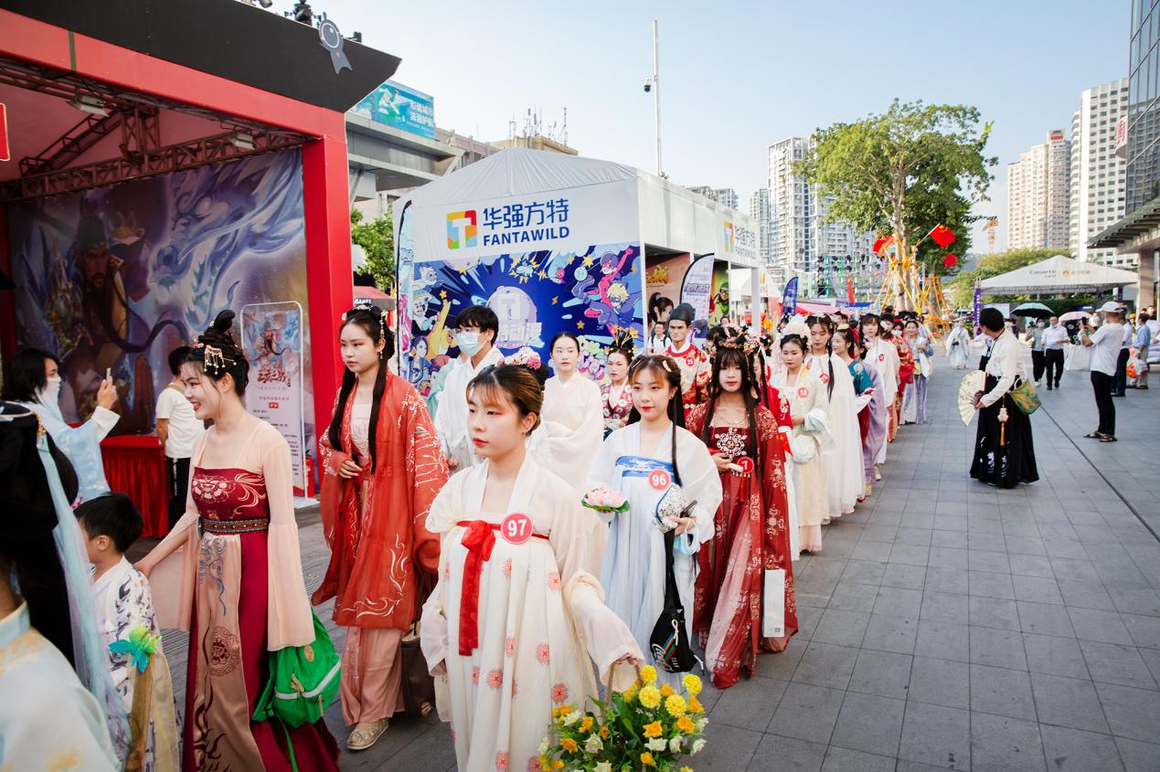 為了提升夜間經(jīng)濟(jì)業(yè)態(tài),節(jié)展期間電玩節(jié)組委會在每天的16時至21時共計舉辦了三十余項不同類型的賽事活動,包括COSPLAY大賽、紅白歌會、國風(fēng)國潮大賽、“第四屆王者榮耀全國大賽城市賽”“英雄聯(lián)盟 ·金鏟鏟之戰(zhàn)線下體驗派對”、主街游戲競技場、COSPLAY巡游、漢服巡游、國風(fēng)走秀等。同時還邀請知名COSPLAY團(tuán)、人氣COSER熊祁、唯安、組合844樂隊、七朵家族舉辦了專場見面會和簽售會,吸引了大量觀眾駐足圍觀,臺上臺下熱情互動,掀起陣陣活動高潮,以沉浸式的體驗帶動新消費(fèi),打造深圳夜間消費(fèi)新地標(biāo)。