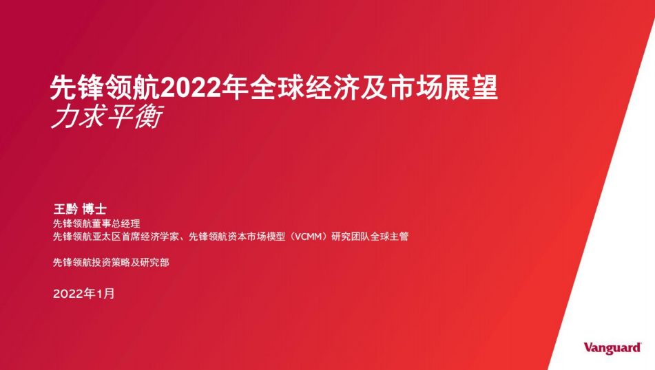 讀特客戶端·深圳新聞網(wǎng)2022年1月26日訊(記者 張俊達(dá))近日, Vanguard先鋒領(lǐng)航于萬得平臺舉行線上交流會,正式發(fā)布《先鋒領(lǐng)航2022年全球經(jīng)濟(jì)及市場展望:力求平衡》。會上,先鋒領(lǐng)航投資策略及研究部亞太區(qū)首席經(jīng)濟(jì)學(xué)家、先鋒領(lǐng)航資本市場模型(VCMM)研究團(tuán)隊(duì)全球主管王黔博士就展望報(bào)告進(jìn)行了主題分享并圍繞相關(guān)話題與參會嘉賓展開了深入探討。