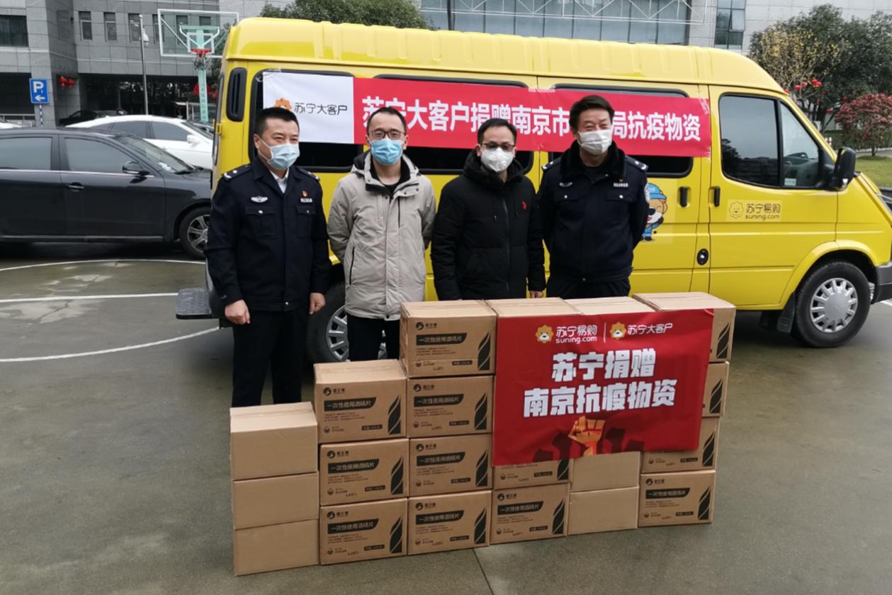 蘇寧大客戶在保障政企單位采購的同時,在復(fù)工第一周為南方電網(wǎng)和南京市公安局捐贈了酒精消毒棉片、免洗洗手液及次氯酸鈉消毒液等防疫物資。