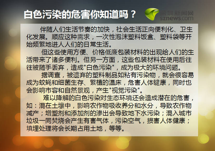 伴隨人們生活節(jié)奏的加快,社會生活正向便利化、衛(wèi)生化發(fā)展。順應(yīng)這種需求,一次性泡沫塑料飯盒、塑料袋等開始頻繁地進(jìn)人人們的日常生活。