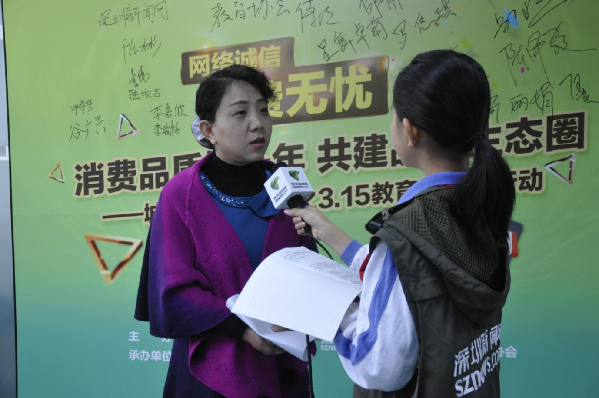 深網(wǎng)小記者現(xiàn)場采訪深圳市消費者委員會投訴部部長靳麗娟